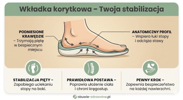 Protip: Podeszwa korytkowa to „anioł stróż” dla osób z niestabilnością stawu skokowego – daje poczucie osadzenia stopy, którego brakuje w zwykłych klapkach. 🛡️✨