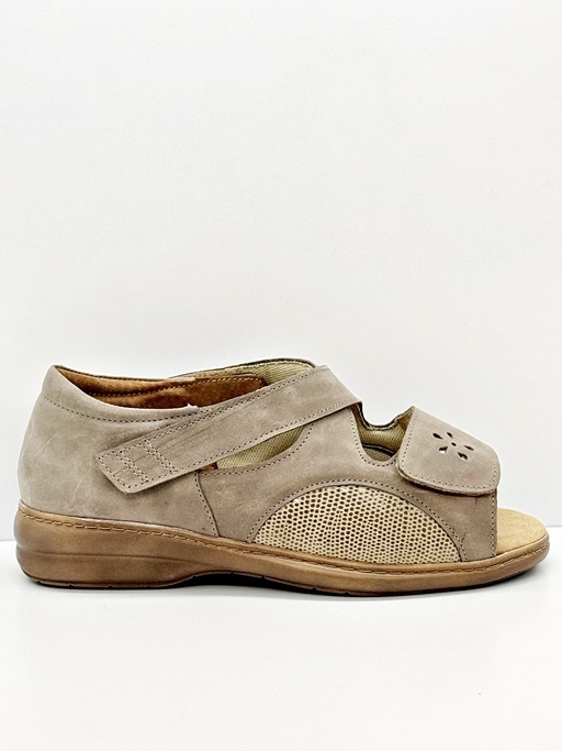 Sandały na bardzo szeroką i opuchniętą stopę, które łączą skórę naturalną z elastycznym streczem w newralgicznych miejscach — model Axel 2523 to obuwie zaprojektowane z myślą o stopach wymagających szczególnej troski. Regulowane paski na rzepy z możliwością indywidualnego przycinania, zabudowana pięta i miękka wkładka skórzana sprawiają, że but dopasowuje się do stopy — niezależnie od tego, jak bardzo jest ona opuchnięta, szeroka czy wrażliwa. To jedna z tych propozycji, przy których klientki mówią: "w końcu coś dla mnie".