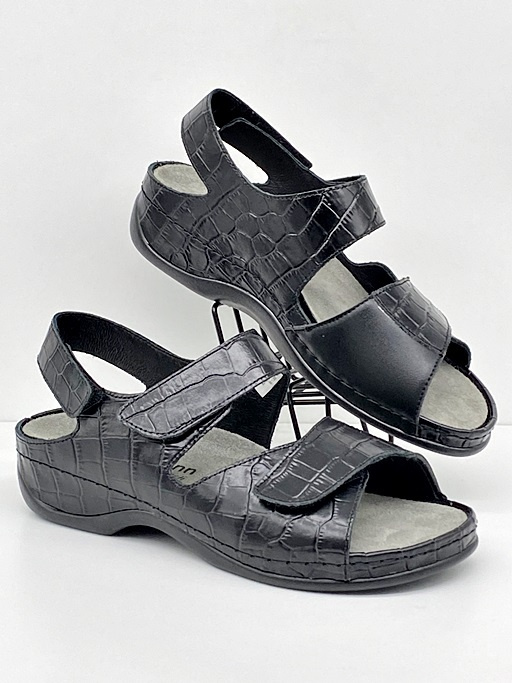 Berkemann Rina 01040-949 czarne sandały na haluksy damskie, strecz, tęgość G-H-J