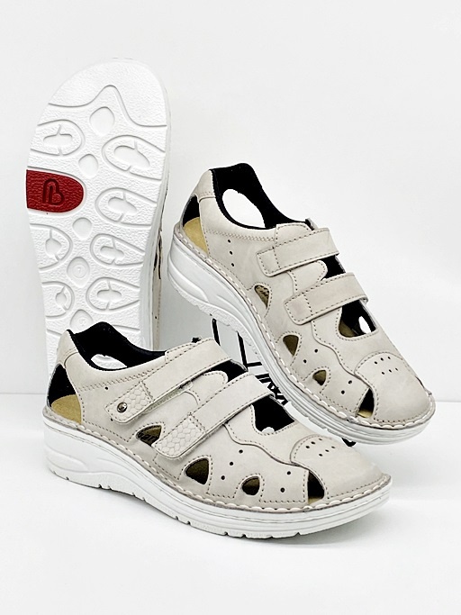 Dodatkowym atutem tych sandałów jest możliwość regulacji tęgości na podbiciu za pomocą dwóch pasków na rzepy. Zakres regulacji wynosi G-H-J co oznacza stopę średnią plus. Dzięki temu każda użytkowniczka ma możliwość dopasowania obuwia do swoich indywidualnych preferencji oraz aktualnych odczuć fizycznych.