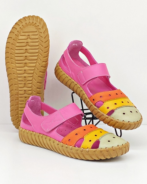 Kolorowe sandały damskie skórzane Loretta Vitale BB5327 fuksja multi, tęgość G