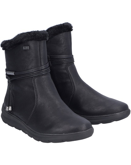 Ciepłe zimowe botki z zamkiem Rieker Z0070-00 czarne, tęgość F 1/2