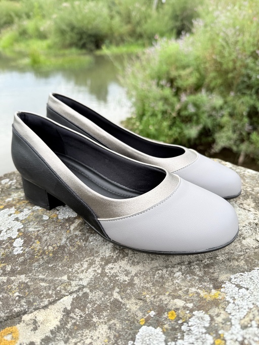 Czółenka New Look na niskim obcasie Piccadilly 145055-3 szaro-czarne, średnia tęgość G