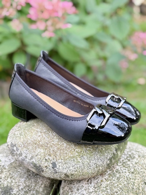 Loretta Vitale W5334 – czarne czółenka całoroczne z miękkiej skóry. Ozdobna klamerka i połyskujące detale dodają elegancji. Niski obcas 3 cm, amortyzująca wkładka i elastyczna gumka wokół cholewki gwarantują wygodę. W zestawie zapasowe fleki. Idealne na wyjątkowe okazje.