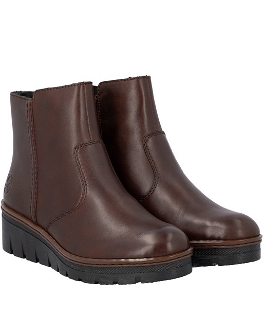 Damskie Rieker X9165-27 brązowe botki na koturnie, tęgość F 1/2