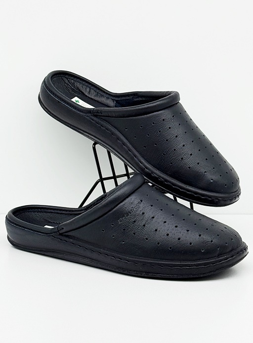 Dr Luigi klapki z zakrytymi palcami PU-01-90-11-90-KS czarne (skórzane), tęgość H