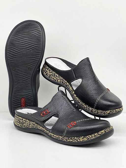 Klapki damskie Rieker 46362-00 czarne, zakryte pace, tęgość G