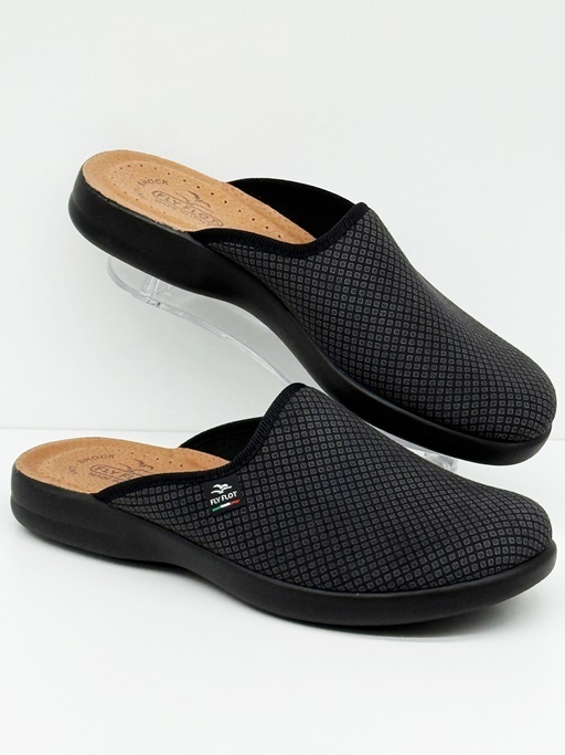 Męskie kapcie Fly Flot P7502IE z miękką cholewką tekstylną, idealne także przy haluksach. Wkładka ze skóry naturalnej amortyzuje i wspiera cyrkulację powietrza. Anatomiczna podeszwa z systemem Anti-Shock zapewnia komfort i regenerację stóp. Włoska jakość na co dzień.