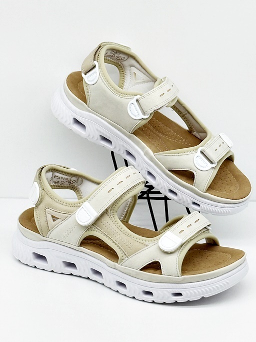 Rieker 64074-60 beżowe lekkie sportowe sandały damskie, regulowana tęgość G-H