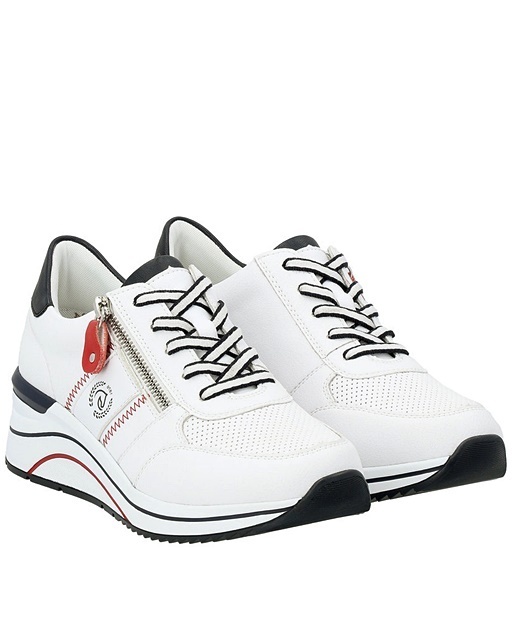 Sneakersy damskie skórzane Remonte D0T04-81 białe na koturnie, średnia tęgość H