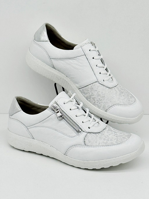 Waldläufer 634K02 K-Ira to białe półbuty damskie na szeroką stopę i wysokie podbicie. Technologia ORTHO Tritt zapewnia komfort nawet przy haluksach i palcach młotkowatych. Delikatne wnętrze i stabilizująca wkładka idealne dla bardzo wrażliwych stóp.