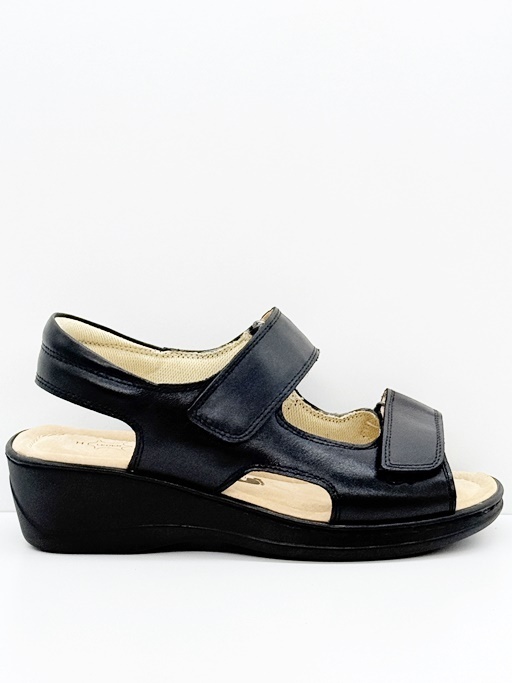 Wygodne sandałki damskie AXEL 2507 czarne skórzane na koturnie, tęgość H-K