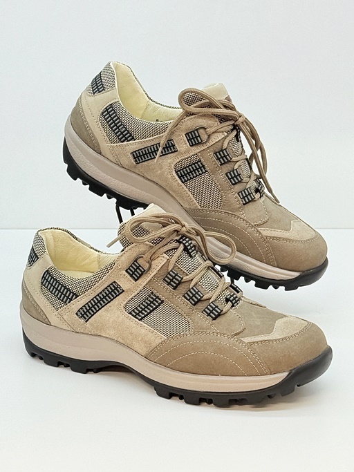 Połączenie szlachetnej skóry naturalnej z wytrzymałymi wstawkami tekstylnymi sprawia, że buty są odporne na trudniejsze warunki, a jednocześnie pozostają lekkie i elastyczne. Szaro-beżowa kolorystyka jest niezwykle praktyczna – kurz i piasek z trasy są na niej niemal niewidoczne! 🎨